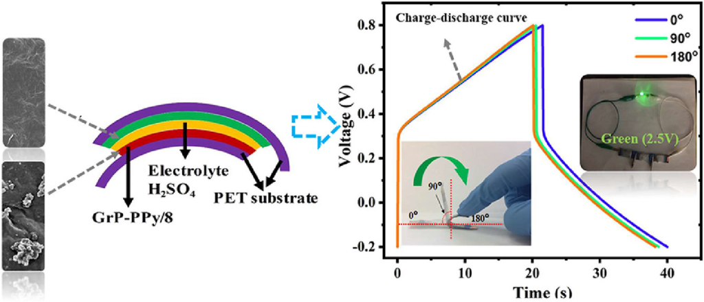 Weizheng Wang, Omer Sadak, Jiehao Guan, S Gunasekaran, Facile synthesis of graphene paper/polypyrrole nanocomposite as electrode for flexible solid-state supercapacitor. Journal of Energy Storage 30, 101533